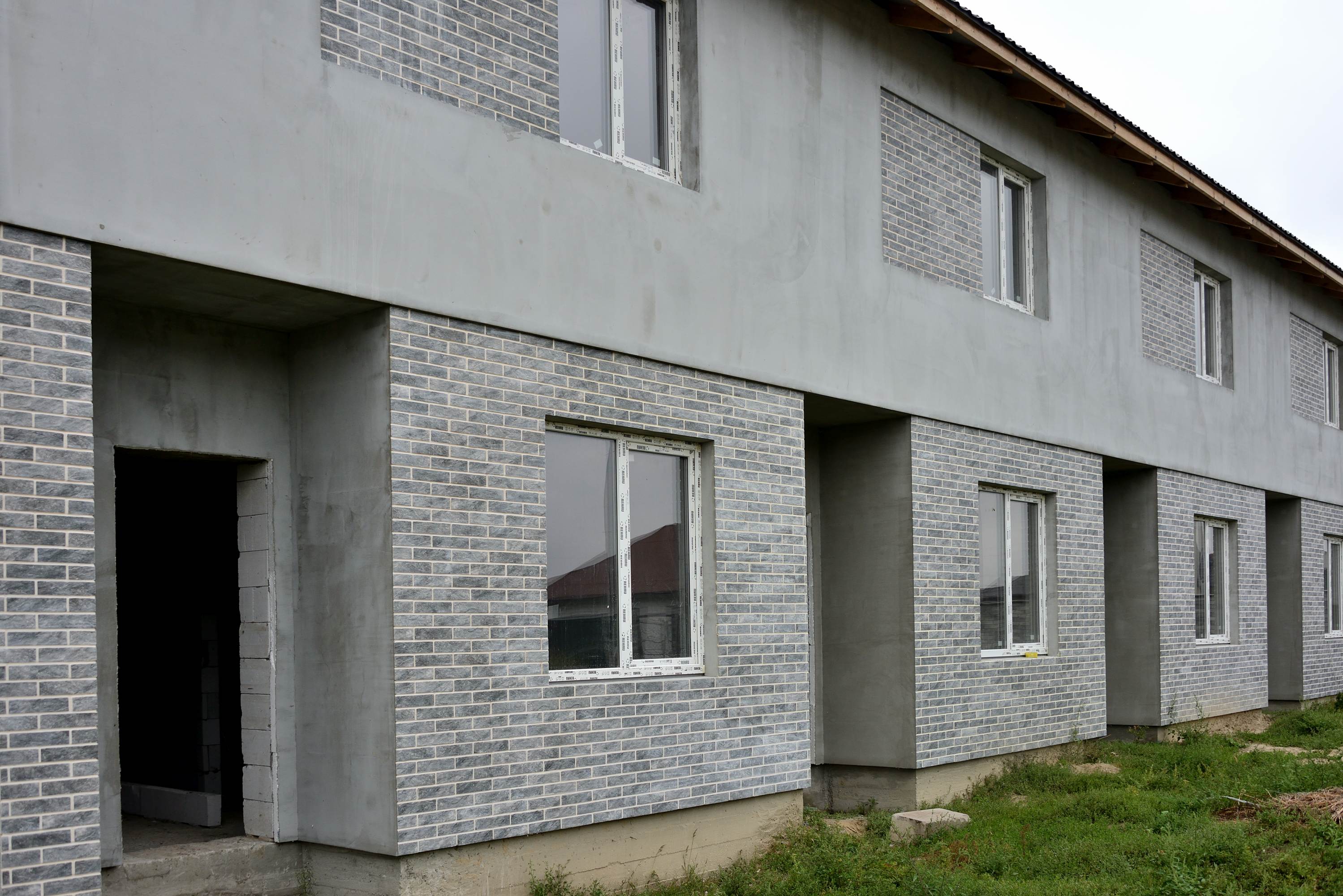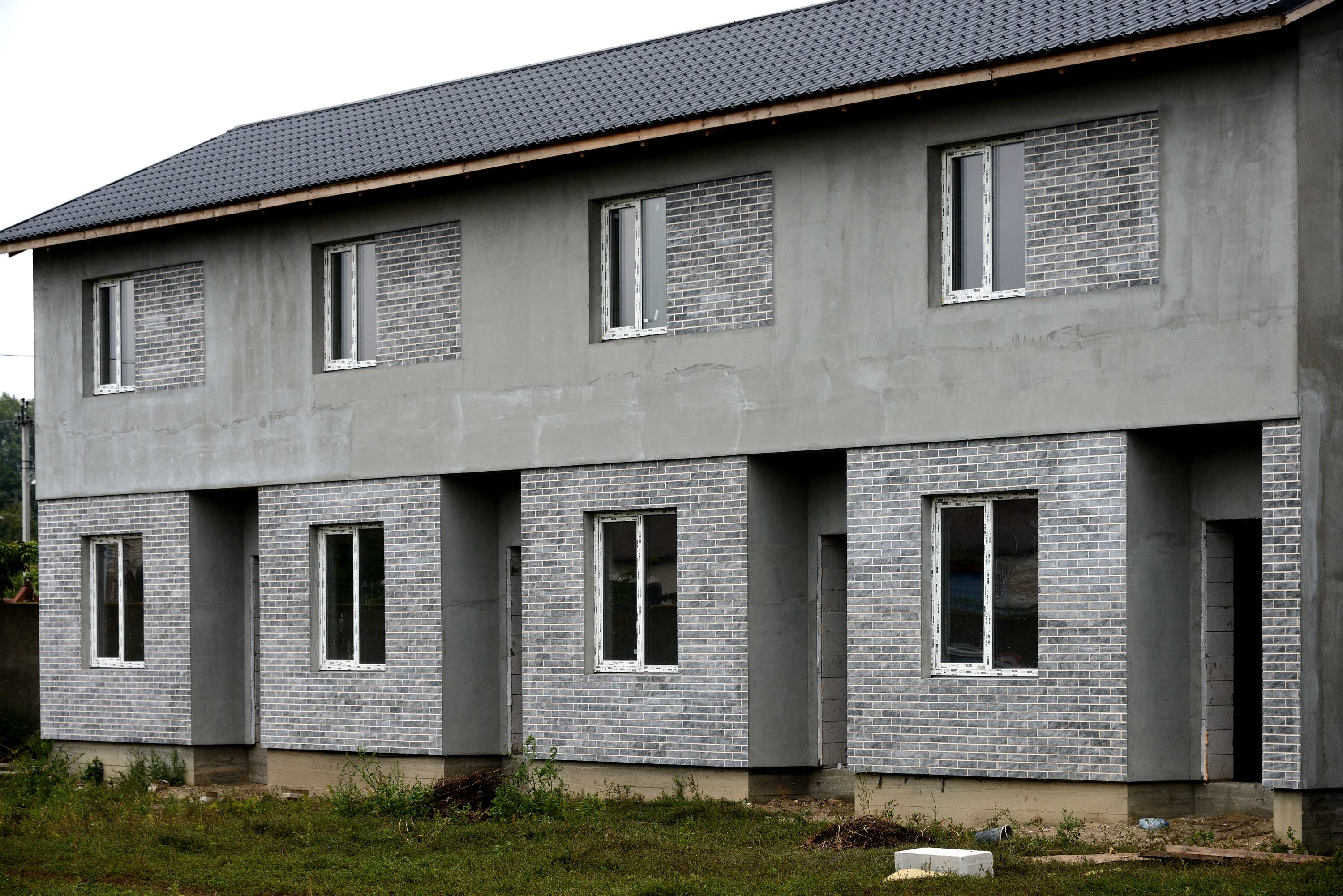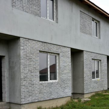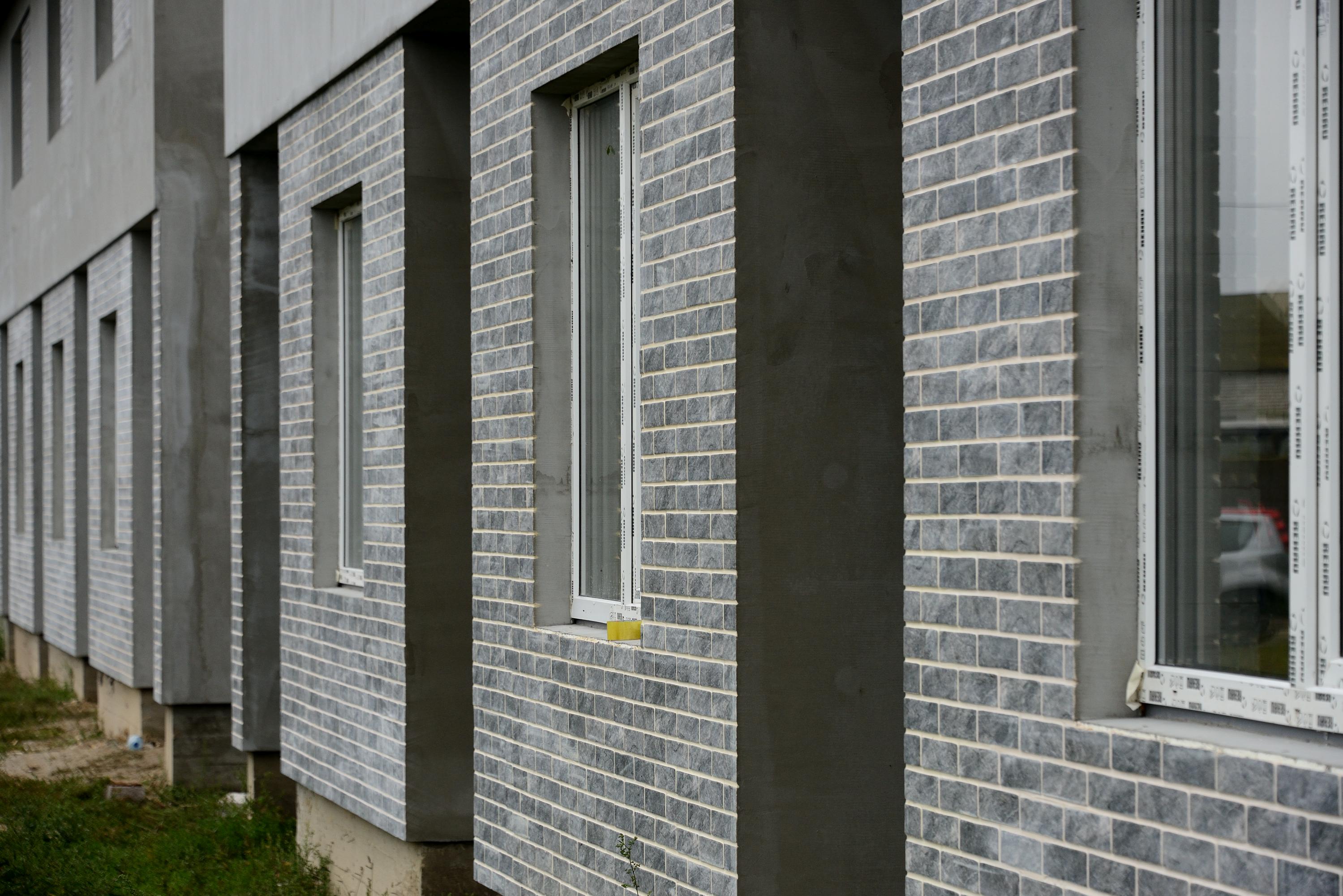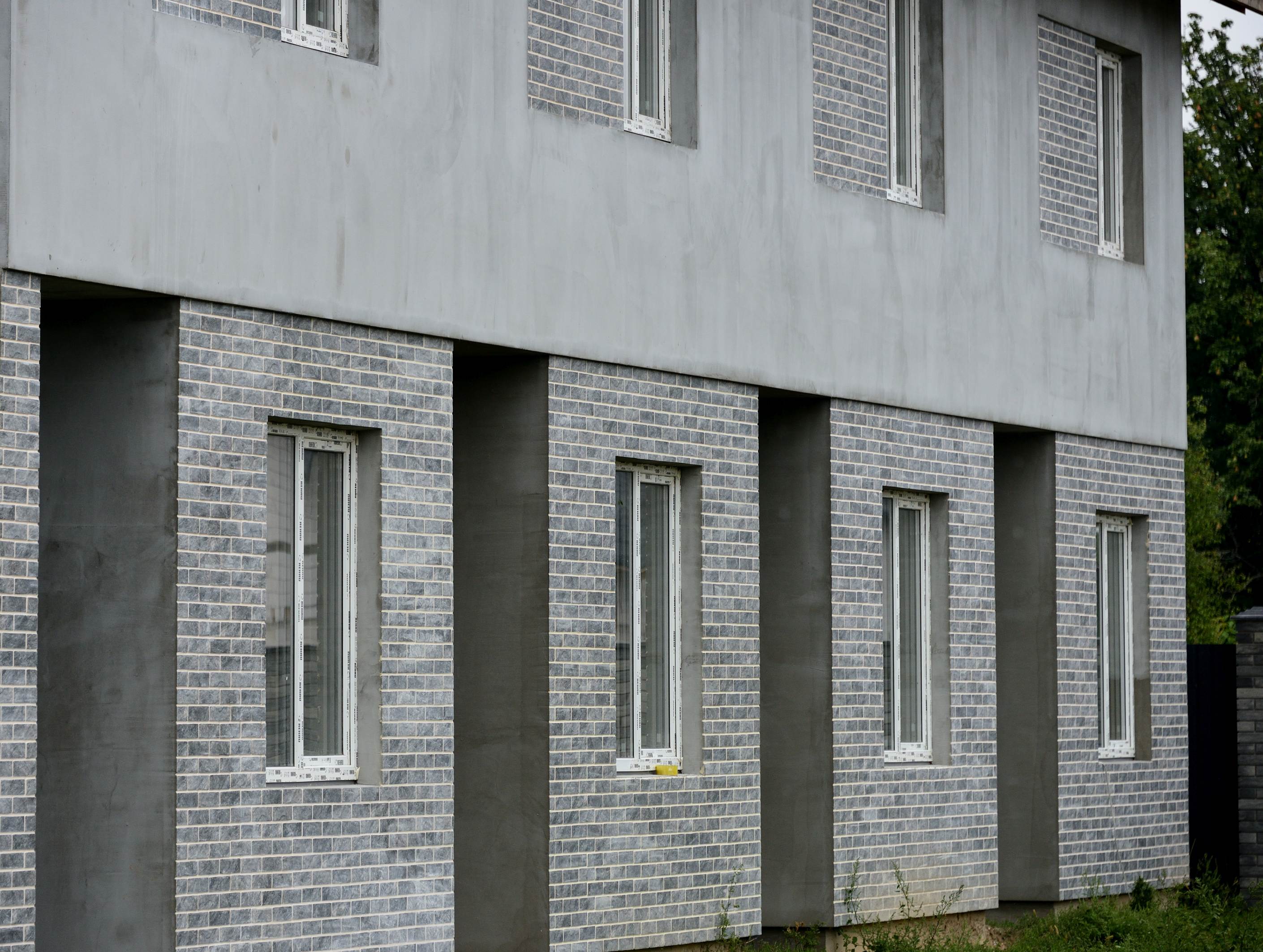Для покращення енергоефективності будівлі було використано термопанелі з інтегрованим утеплювачем. Коричнева глазурована плитка забезпечила естетичний зовнішній вигляд фасаду, підкреслюючи сучасний стиль будинку.